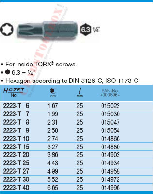Click the button below to add the HAZET 2223-T6 TORX-SCREWDRIVER BIT to your wish list.